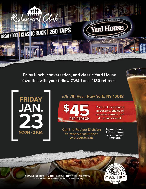 Call the Retiree Division to reserve your spot today: 212.226.5800